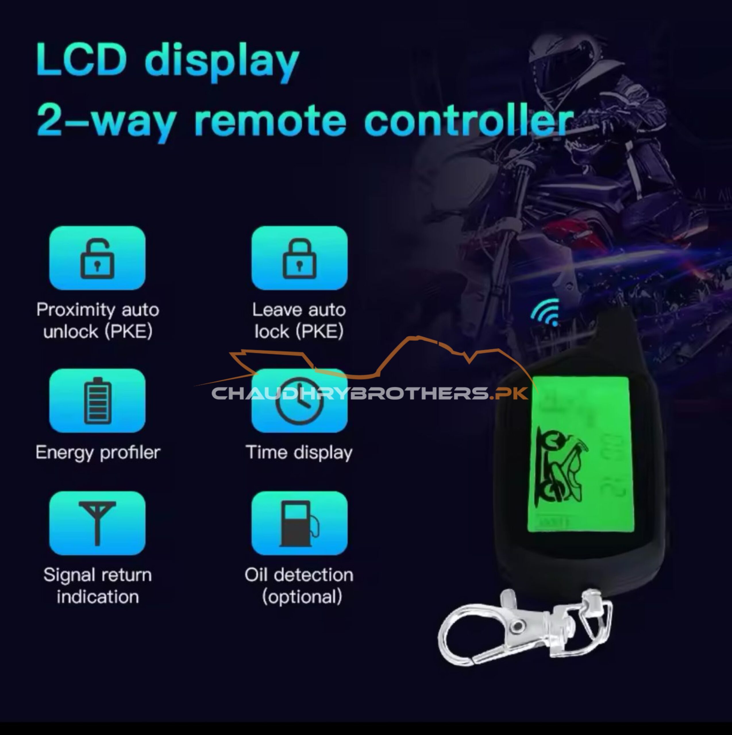 Motorcycle LCD Two-way Remote Control with Inductive Power and Time Display Oil Detection Motorcycle