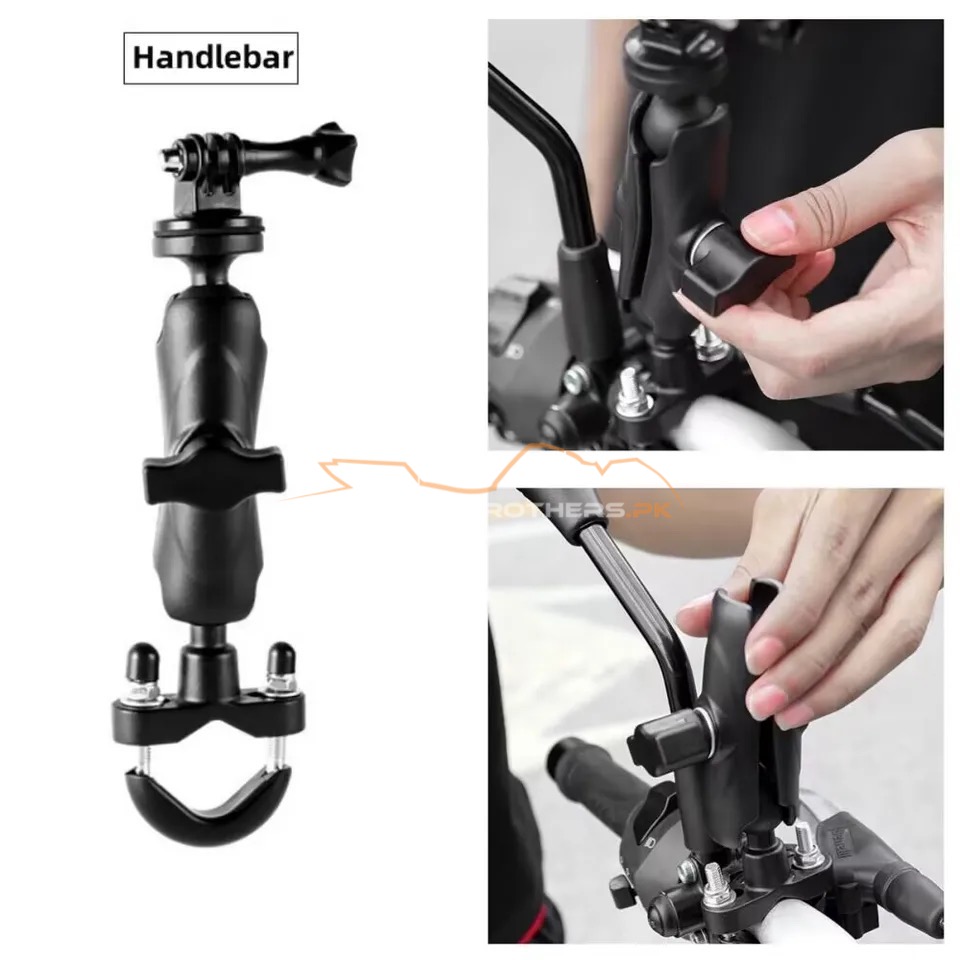 A BRACKET MOUNT: designed specifically for motorcycle handlebar to secure the camera to the locomotive. Safely record the scenery on the way to riding.