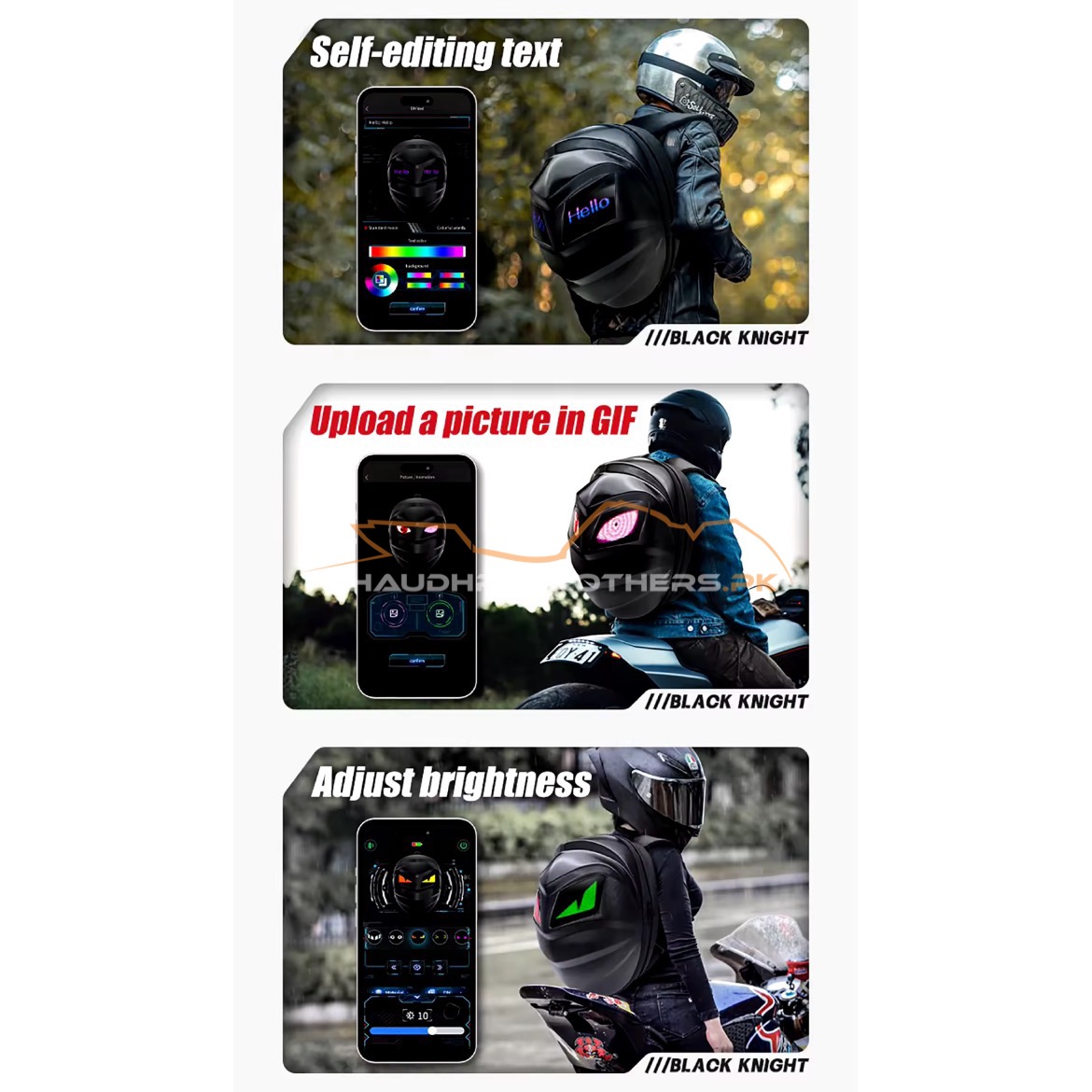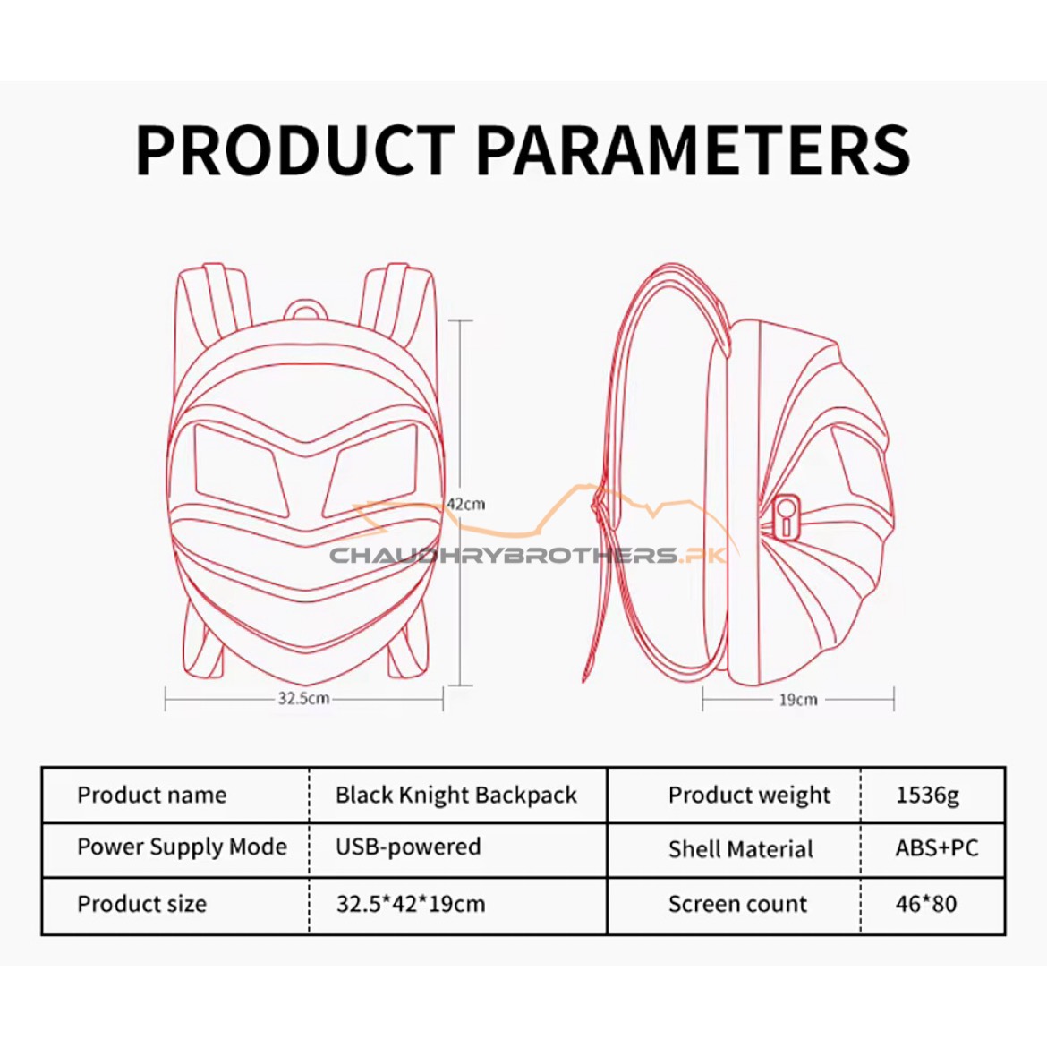 (Material) LED smart knight backpack appearance purchase 3D hardcore waterproof material;the back width using 1680pvc,46*80 full-color dot matrix screen, support text, pictures, GIF, and other formats ;adjustable shoulder strap size; breathable material for the back